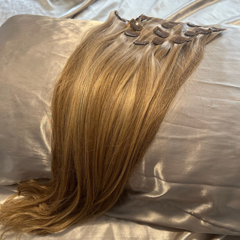 Handle with Care: Treat your clip-ins like fine silk! Brushing gently, clipping and unclipping carefully, and avoiding yanking or tugging will prevent a lot of wear and tear. Remember, unlike your natural hair, extensions won’t grow back or heal - once a strand is broken or a weft is damaged, that’s it. So preventive care is everything.